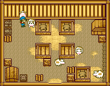 The world consists of two locations: your ranch and the local town. Your ranch has normal facilities like a house you can upgrade, a barn separating the cows and the chickens, and a tool shed with an underground cave where another Harvest Moon mainstay, the harvest sprites (i always thought they looked like cuter gnomes), are first introduced to the series. Seasons change, alternating not only the background music (which annoyingly restarts whenever you walk-in or walk-out of a room), but the world color scheme, from a green-and-well spring to black-and-white winter. The local town, filled with shops that include the cast of characters from the SNES Harvest Moon like the last game’s potential wives, is where you buy food for both the player and your animals.