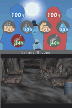 The Lost In Blue games were spiritual successors to the Game Boy Color series Survival Kids, where the player controls a young kid who ends up as a castaway on a deserted tropical island. The first Lost In Blue was an early DS game for me back around 2006, a bygone time where you could actually find a reasonable copy of Trace Memory. While the original first Survival Kids fostered you with late 90’s card-battle anime protagonists Ken and Mery and their mascot ready pet monkey, the first Lost In Blue assigns you the serious young man Keith and the near-sighted quiet young woman Skye. The goal, learn to live off the land and build a way off the island. Every day has you controlling Keith in finding food and water for the pair, as Skye stays in the cave and preps food.