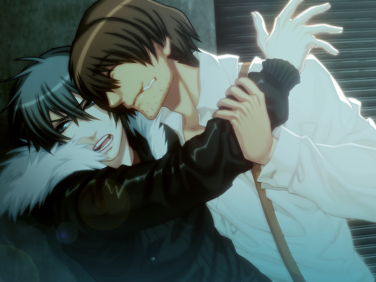 One other major part of TnC I do genuinely like is the game’s art direction. The character designs were done by Tatana Kana, which is the pen name of artist Chinatsu Kurahana. Kurahana also did character designs for Lamento, and nowadays she mostly works on non-BL ventures such as Uta no Prince-Sama, Samurai Flamenco, and Fire Emblem: Three Houses. While her art style in TnC is quite rough compared to her more refined design work in Three Houses, I still find something appealing with her designs. There’s a certain “mid-2000’s”-flavored edginess to TnC that makes the characters a bit more distinctive than expected, especially for some of the plainer-dressed characters like Akira and Keisuke. Even Shiki, who looks like somebody polled a bunch of wannabe goth teens from DeviantART on how to design a hot anime dude, has a unique and very ridiculous design. There are some occasional hiccups with side characters who seemingly were designed with noticeably less effort, particularly with a character who only shows up in Rin’s route, but it’s not really a huge issue.