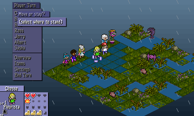 Fragrant Story is a simplistic isometric SRPG, purposely evoking Final Fantasy Tactics and Tactics Ogre (side note: I haven’t actually played these games and can’t speak too deeply on comparisons). At the beginning of story mode or challenge mode, characters can be selected from the line-up of Otosan kids, with each kid taking on a specific job class with unique skills. Combat is executed with a timed-hit system on a spinner wheel – land on specific icons to hit the enemy, do critical damage, heal, dodge, or block. On higher difficulties, the spinner is harder to land more precisely. Successfully defeating enemies nets characters experience points and stat bonuses upon level-up, and finishing stages or challenges grants the player the unfortunately-named currency ‘Stanks’, as well as tickets to unlock extra goodies.