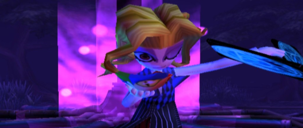 An underlining joke in RPGs are the boss fights with characters that will become playable, but somehow seem worse as party members then bosses. Usual jokes include “you use to have 4000 health points, so why do you now have 400?” and “why is Shroud Shiver, a move you just used each turn in the boss fight, now something you don’t learn for another twenty levels?”. Okage Shadow King, an entire game about defeating the final boss, then for them to be revealed as a fraud, does this constantly. Half the party is made up of former Shadow King of X or Shadow King of Y. My favorite is Epros, or the Phantom Evil King, because he does the great RPG setup of scheming and threating the party behind a mask shtick, then later he is a lousy party member. While not the final big bad, Amarant from FF 9, goes from being a hired hitman to an underwhelming and cumbersome party member. Why is Muzét, a literal goddess that flies and has hair that can be used to skewer enemies, being bested by wild animals and bandits?