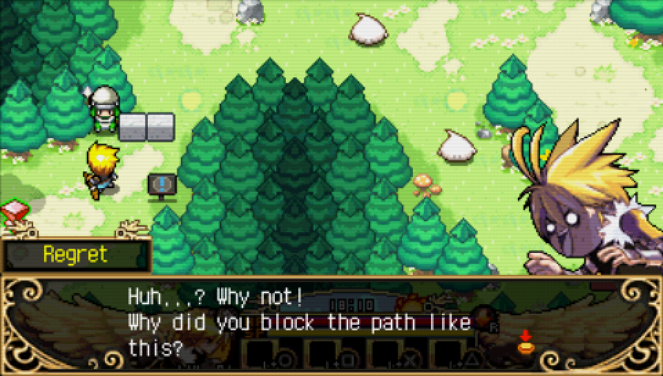 The first Zenonia is cute-looking but very dated and clunky gameplay-wise. I wasn’t a big fan of how the characters slowly putter around and the grindy combat loop was immediately tedious to me instead of satisfying. A shame, since I really enjoyed the game’s pixel art environments. The original Zenonia 1 was published in 2008, and boy howdy, does it show; I think this is a game that would’ve been better enjoyed by high school-me on my iPod Touch.