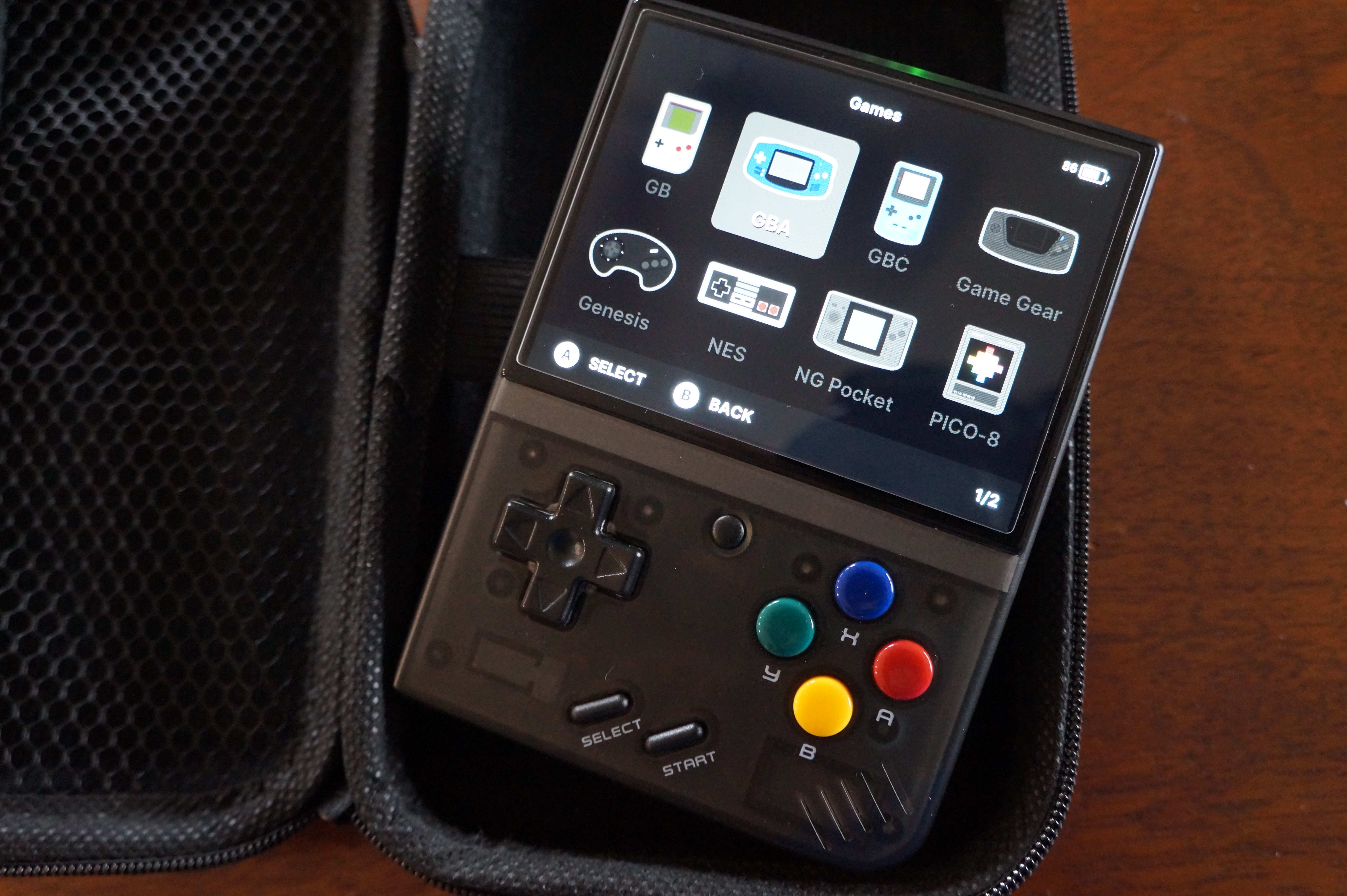 Pros: Gorgeous IPS screen, coupled with good upscaling from RetroArch. OnionOS is easy to install and adds a ton of features. Solid unit build with good d-pad and buttons. Has a headphone jack and charges with USB-C. Very portable, with a small overall size.