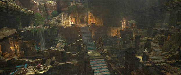 As a kid I would replay the same parts of a video game repeatedly because childhood me had time but not income and each game had to last. Skipping already-completed difficult sections, frequently driving-related, was a reason to start these three games in the middle. Resident Evil (a drum this website is allowed to beat at most once a year), specifically Resident Evil 5, is the first example. Co-op first or third-person shooters are a respectful weakness, with RE 5 entailing seeing how many times Gun-Show Chris Redfield could shotput RE’s secret best character, Sheva Alomar, across gorges. Some areas were revisited countless times, such as the underground ruins. The running water from a ceiling hole , the old lit torches, the plant life; the underground ruins were colorful for a game that would soon become, like all other RE games, almost entirely gun-metal grey.