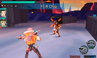The overall visual presentation of E.X. Troopers is excellent and striking. In contrast to the more semi-realistic style used in its parent games, E.X. Troopers uses a cell-shaded style with thick outlines on the 3D models, akin to Borderlands. The lower res screen of the 3DS makes some of the visuals harder to see, but it works really well in the game’s dialogue sequences. The pre-rendered cutscenes and dialogue segments are even portrayed as cycling through individual panels in a comic. Chisato Mita’s colorful and unique character designs really shine with these visual flairs. The general plot and setup of E.X. Troopers, while taking a lot of familiar nods from mecha and sci-fi anime, courtesy of Dai Sato’s writing, feels comforting rather than cliche. Combined with the visuals, it makes the game feel more like a playable shonen anime OVA. Of note, Bren himself is a fun protagonist in all of his hot-blooded himbo glory. Whether it’s his excited shouting after eating food or his inability to pronounce technical words correctly, Bren is a certified Good Boy™ and the game is all the better for it.