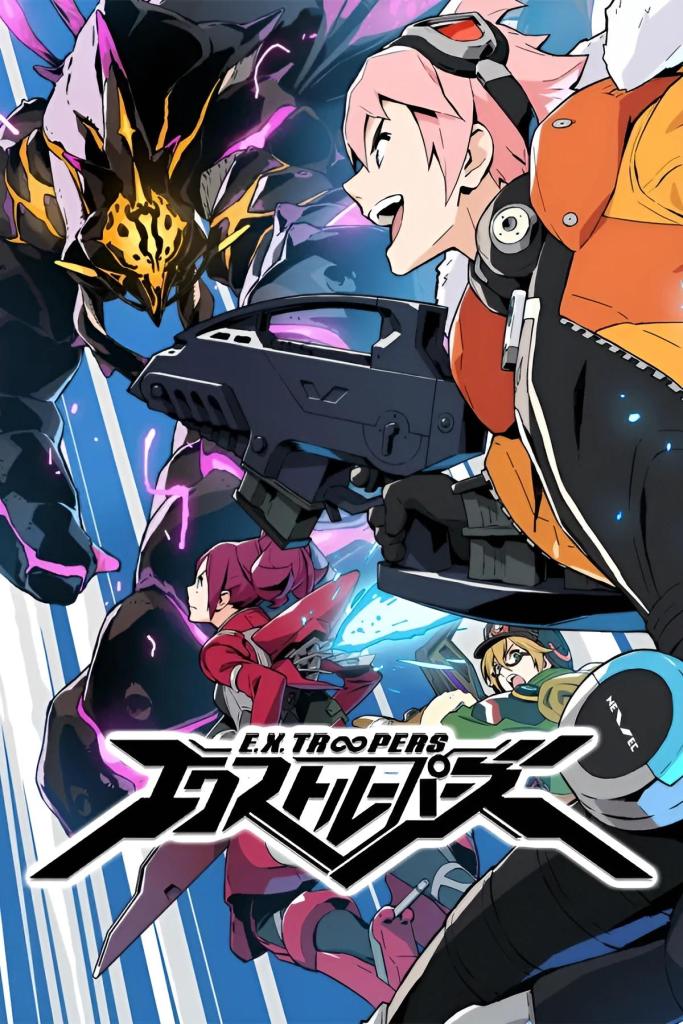 E.X. Troopers follows the (mis)adventures of Bren Turner, the hot-blooded new recruit to NEVEC Academy, the educational branch of a terraforming company on the planet E.D.N. III. En route to the academy with his instructor Walter, Bren’s transport ship is attacked by rogue mech units (called Vital Suits, or ‘VS’ for short). In the midst of the fray, Bren takes control of a prototype advanced VS equipped with AI, which he christens ‘Gingira’. After finally landing at NEVEC Academy, Bren finds himself in the company of various fellow recruits: Yuan, the nerdy scholar, Julie, a tech specialist and VS fanatic, and Chris, the academy’s crabby ace student who starts a rivalry with Bren. Bren and co. handle a variety of tasks as part of their training, usually fighting mercenary pirates or Akrid, the bug-like alien creatures inhabiting the planet. While completing missions on behalf of the Academy, Bren later connects with TeeKee, a mysterious snow pirate shrine maiden seeking to avert a catastrophic ecological event involving the Akrid.