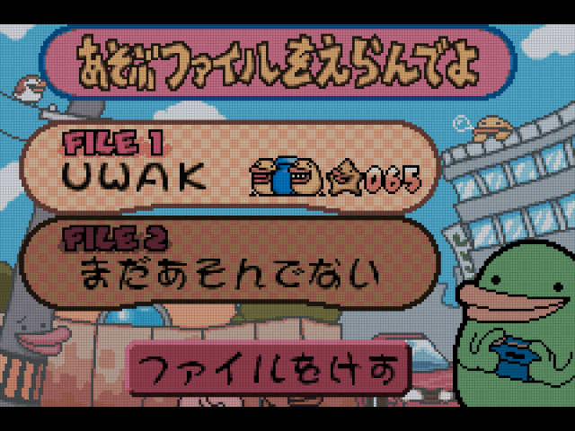 Guru Logic Champ was one of the last games released by developer Compile, best known for creating the Puyo Puyo series. Eschewing the gooey tile-matching aspects of Puyo Puyo, Guru Logic Champ instead focuses on tactically moving and removing blocks to fill in specific spots within an image. The player controls duck-like creatures, the titular ‘Champs’, who are attempting to solve the problems of various locals in their city, which vary from turning on a faucet for an exhausted runner to helping a person open a jar of jelly. Some cursory internet sleuthing led to a fan translation of the game’s story on a random forum.
