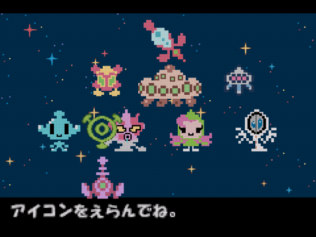 Hatena Satena is a funky sci-fi themed Picross-adjacent game from Hudson Soft. The game’s cutesy art syle is thanks to Framegraphics, the iconic early 2000’s art studio founded by Hideyuki Tanaka, of Bust-A-Groove and Super Milk Chan fame. As far as I can tell, however, Tanaka was not directly involved with the development of Hatena Satena. There don’t seem to be rough translations of the game’s dialogue, but from context, it seems to involve helping out aliens.